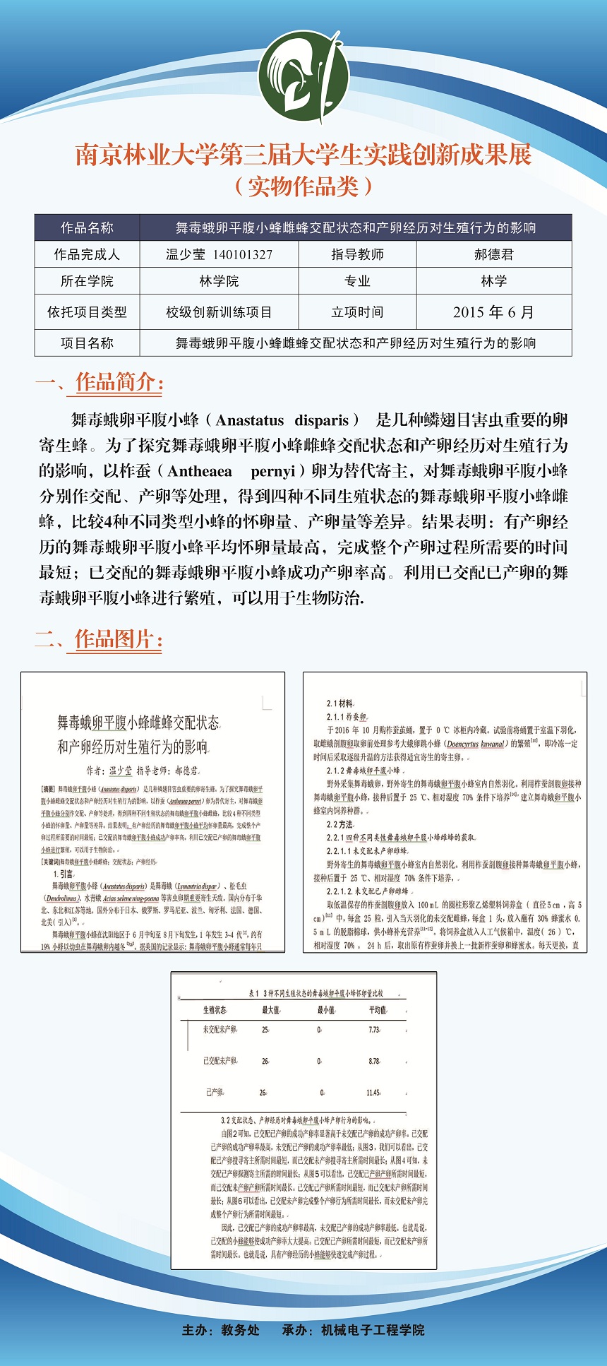 舞毒蛾卵平腹小蜂雌蜂交配状态和产卵经历对生殖行为的影响